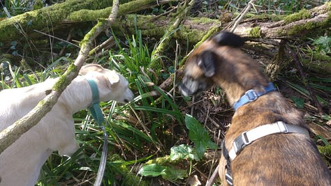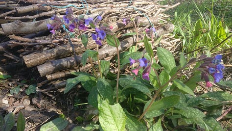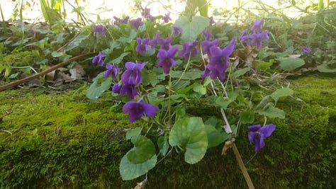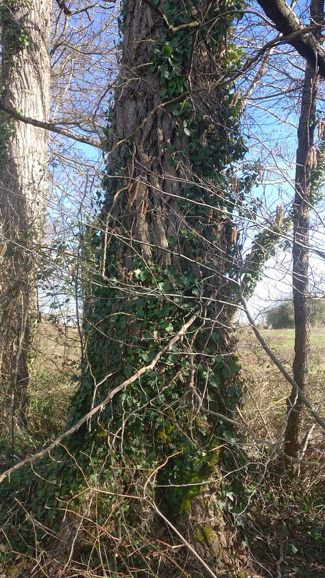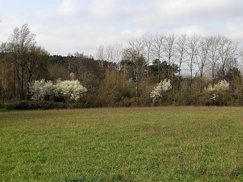 The migrating birds are back, the cranes and geese flying north, and the hoopoes and golden orioles come back to nest. The air is full of the songs of thrushes, blackbirds and the wild cackle of woodpeckers. The mud down where the stream flooded is pocked with the tracks of badgers, wild boar, roe deer and foxes. We startled a hare and watched a red squirrel showing off, leaping from tree to tree along the stream.