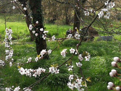 Today was glorious. Too glorious to be indoors. It was a day of eating lunch outside in the sun, pruning vines and roses and recording some of the flowers that have emerged around the house now that the flood waters have receded. The plain of the Garonne is now a wetland, dozens of lakes and flocks of egrets. We are in the hilly country out of the flood plain, but with our own little watercourses that flood just the same.